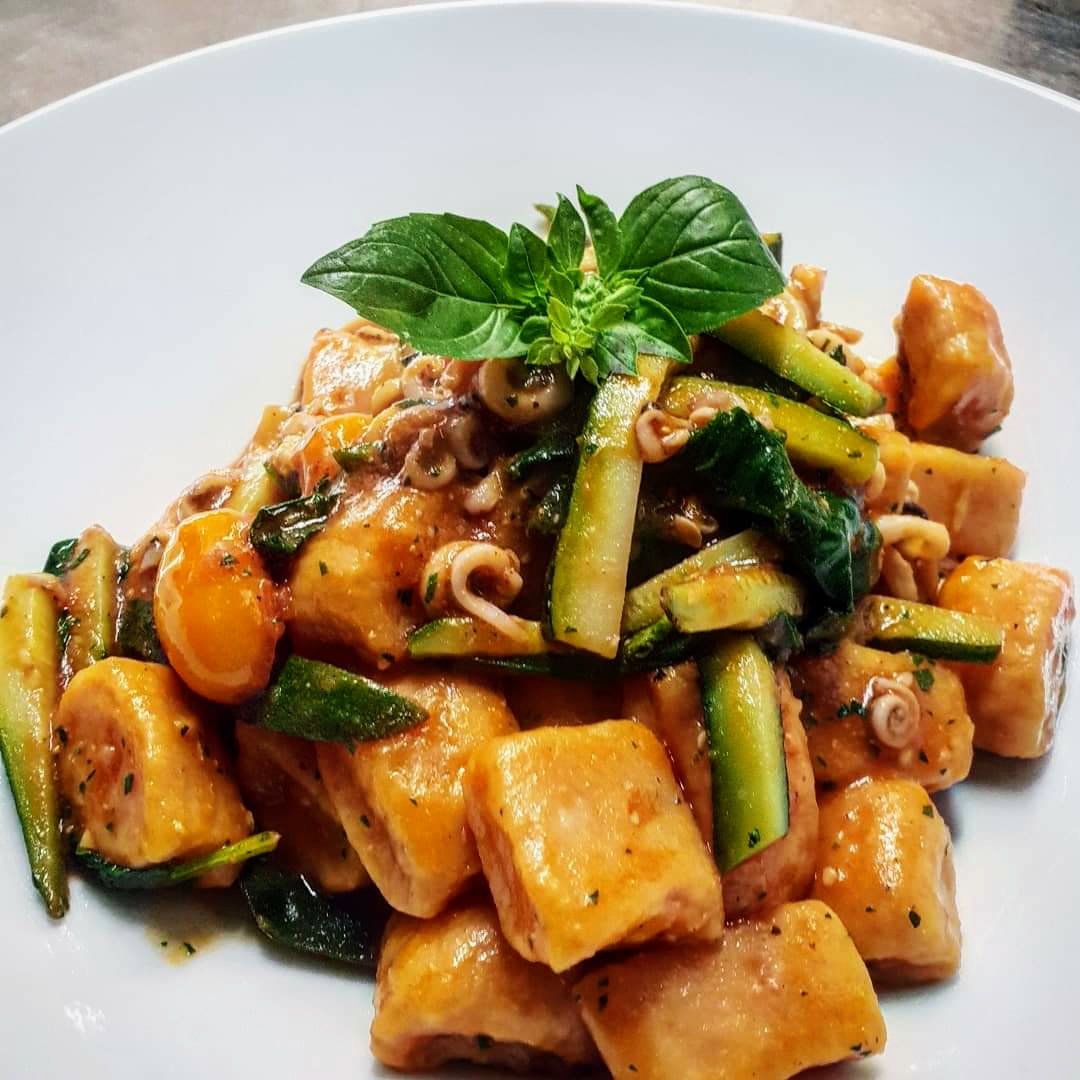 This bustling restaurant was delicious! The pizza was freshly made and perfectly cheesed, the seafood casserole was huge and delicious, the seafood tasted fresh. The veal with fig was incredible - a great mix of sweet and savoury and was a great meal size. The staff were lovely and very attentive and the food service was quick, despite the busyness of the restaurant.