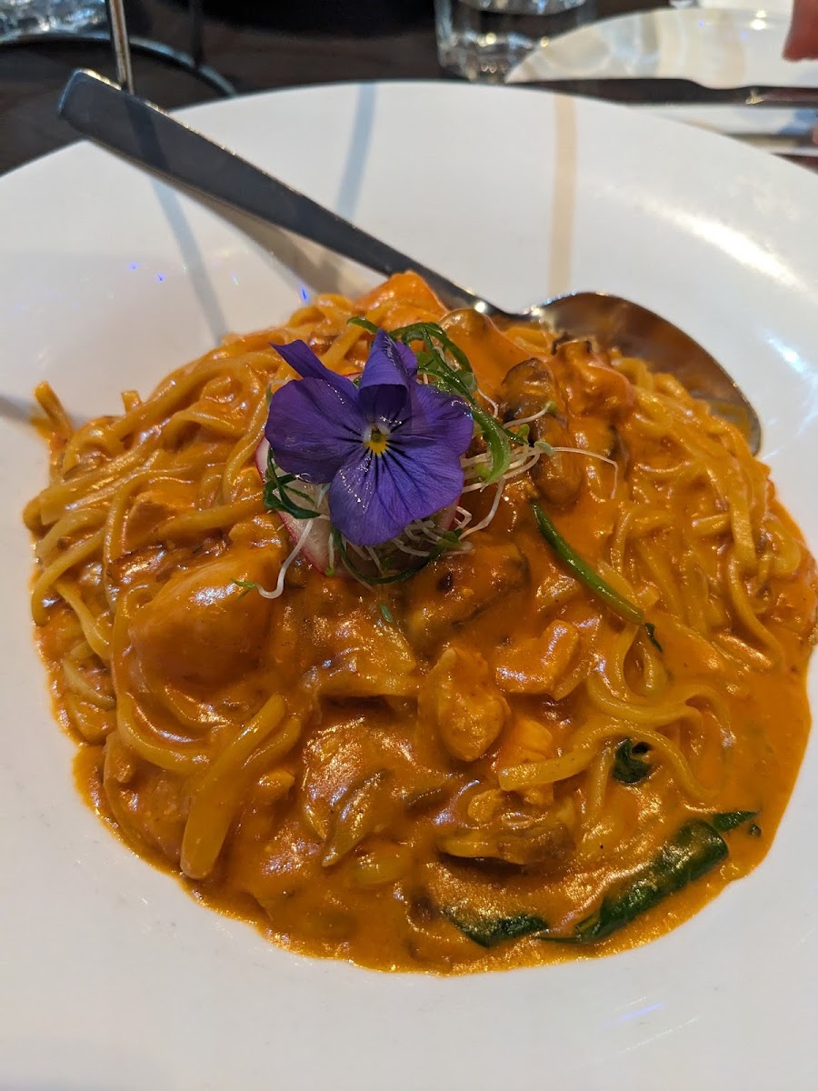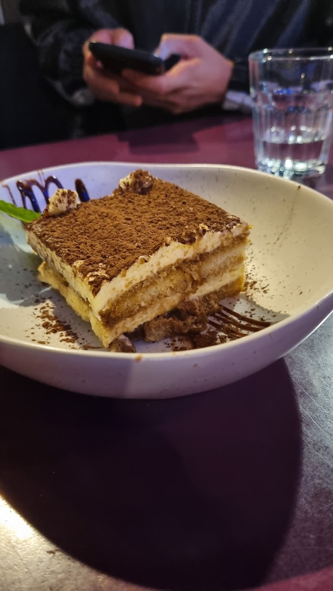 As a couple, we got the Bruschetta to start, the Lobster Spaghetti main and the veggie pasta. We had Tiramisu as a dessert. The starter was ok, but overpriced for what it is. The mains were good and tasty. The Tiramisu dessert was good. We shared a bottle of the Italian Pinot Grigio which was also nice. The service was good and the place was busy. The only downside is the fact that, though they advertise it, they charge a surcharge for card payments. This seems pretty stingy in this day and age where many places absorb these costs as 99% of people are using card now. Disappointing way of putting costs of doing business into the customer on top of the product cost.